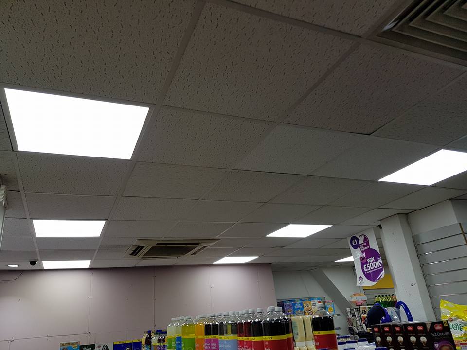 Full shop rewired With energy saving switching to help the shop owner save money.